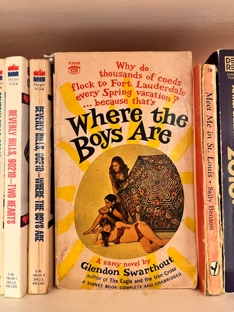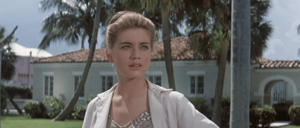 Where the Boys Are is an odd novel. First off is the fact that the narrator of the book – Merrit with one “t” as opposed to two “t“‘s everywhere else – is a female while the author is male; you just wonder if Merritt’s female perspectives then are legitimate. Secondly, the book contains supposedly hip lingo and the reader wonders if it was really ever used. Aside from these two things, the book, as you might expect, is much racier than the film. For example, in the novel, TV Thompson has subsidized his trip south by selling fake IDs and has obtained his nickname as a result of possibly raping a girl back home. In the screenplay, the dean takes spring break to decide if Merritt should be expelled while in the novel the only school thought concerning Merritt throughout her holiday is choosing a major. And while Film Merritt talks a good game but remains chaste, Book Merrit has sex with all three male leads – TV, Ryder and Basil – and winds up pregnant! “Not only had I been erotic with all three of them…” Nobody would say it that way, by the way. “Incidently, (sic) I was preg. That’s right, p.r.e.g. I’d been sure for five days…I hadn’t the faintest who was the father…I had been carried away by Florida at the beginning, then when I had recovered my poise and morals and maturity, etc., it was too late.” “Preg“. Has anybody ever said that? Also, she has sex with three guys in the space of a week and then “realizes” she is pregnant? Anyways, It should come as no surprise that none of this was included in the screen treatment.