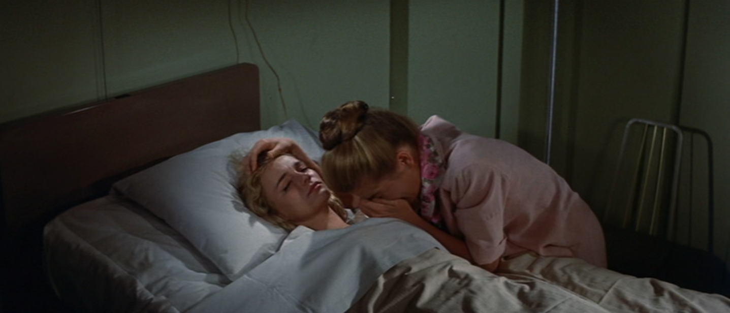 As Melanie’s situation turns decidedly sour, to say the least, Merritt begins to crumble under Ryder’s relentless pressure. Her virtue is saved by Melanie’s accident and this gives her time to think. There is a great scene at the hospital that allows Merritt to step back. She becomes enraged at all boys who use girls for their own personal pleasure and feels that Ryder is no better. He feebly defends himself but is forced to accept Mer’s point. The finest and most substantial scene in the film comes when Merritt visits Melanie in her hospital bed. Mel is despondent – “I lived it up!”, she says, sarcastically – and wants to go home to her father. As she fades under sedation, Merritt breaks down and cries, cries for all that has been lost and because of the immensity of what becoming an adult can mean to all kids.
