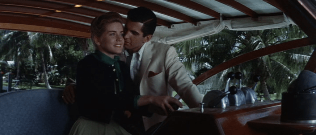 The director here is the prolific Henry Levin. Levin had been active through the Forties directing all manner of films from adventure to films noir. I may have first encountered him through his having directed a favourite of mine, 1957’s Bernardine. He directed Pat Boone twice more before helming our film. Later, he shepherded Bobby Darin and Sandra Dee through their vehicle If a Man Answers (1962) before working with Dolores Hart again in the charming Come Fly With Me (1963). Then he pleased me by directing two of the four Matt Helm films and then oversaw the surprisingly good Fred Williamson film That Man Bolt in 1973.