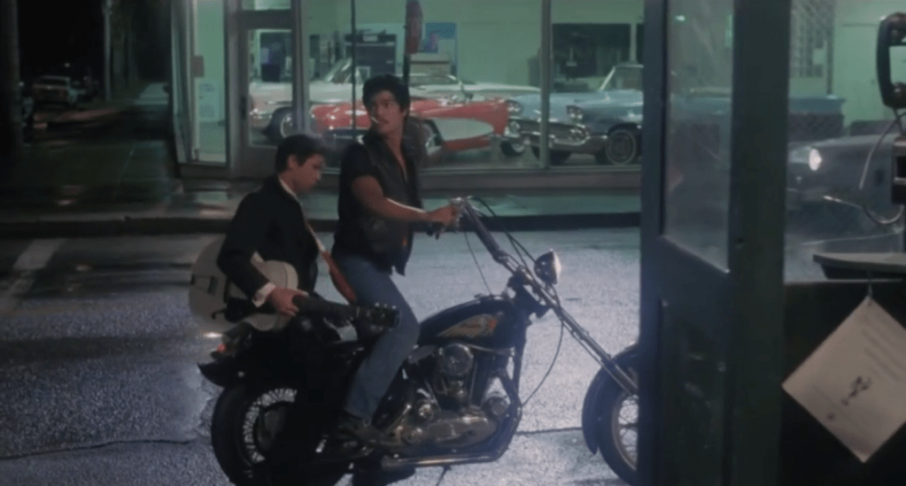 But Bob’s artistic side is seen, as well. His drawings win a contest and the prize is not money to help with the baby coming but a drafting table to continue his pursuit – but Rosie won’t have it set up in their small trailer. Bob storms out – “you don’t respect any sh*t I do!”. And Bob cares enough about his kid brother to take him down to Tijuana to “cure” his mooning over Donna. Ritchie wakes up in a strange and barren place and here again Bob is trying to help by taking him to see a mysterious Mexican wise man. When the two get home, Connie is livid as – in the night – Rosie went into labour and had her baby – “she had a girl. We named her Brenda”. She rails at her boys calling them sinvergüenzas (“a brazen scoundrel; shameless rogue”) and Bob bolts. “Go ahead, go play with your bike!”. The boys finally have a major blow-out with Bob lamenting the fact that the boys’ father earmarked Ritchie for greatness while Bob was left to pick up the leftovers. Esai makes you feel Bob’s pain while at the same time for much of the film he is taking you on an enjoyable ride.