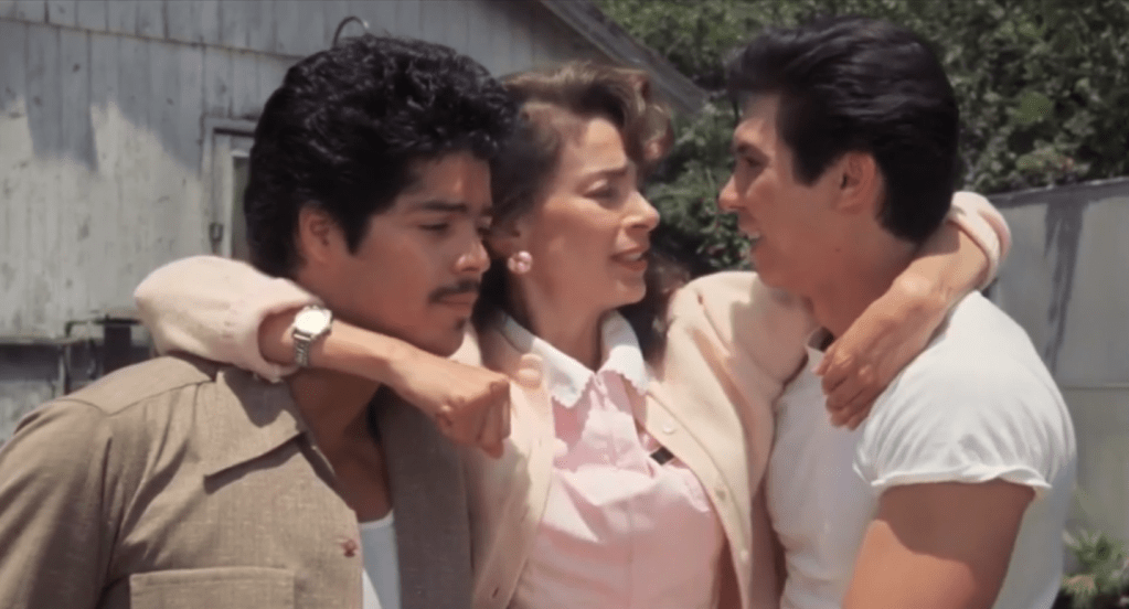 Fascinating to learn that the real Bob Morales was on set during filming and Esai absorbed all of Bob’s mannerisms and accurately mimicked his accent and way of talking. It is a characterization that is a joy to behold and few others have affected me as much as this one. I had a buddy who would devour this film with me and he and I adopted many of Esai’s expressions, using them as inside jokes and alienating others in our midst; “hey, man, the joint is the joint”, “‘Bony Maronie’? To these sh*t-stompers?”, “That’s for sh*t! I mean, Valenzuela was our dad’s name. You can’t just cut it in half”, “Let’s just go!” and so many others. Not so much what he said but how he said it. It was musical, just as musical as the many great songs in the film.