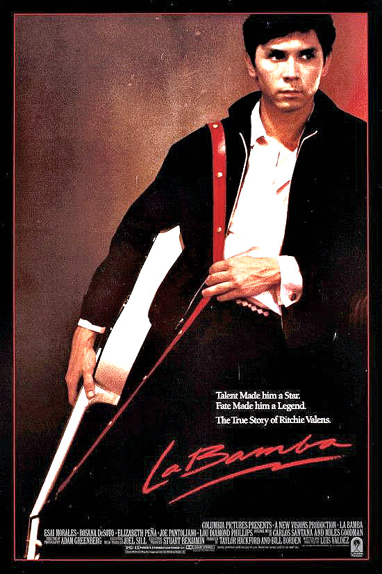 Starring Esai Morales, Lou Diamond Phillips, Rosanna DeSoto, Danielle von Zerneck, Elizabeth Peña, Joe Pantoliano, Rick Dees and Brian Setzer. Directed by Luis Valdez. From Columbia Pictures.