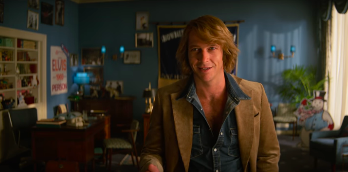 One of the main things about this film that may have concerned many Elvis People is the endorsement it received from the estate as a whole and by Priscilla, Lisa Marie and Jerry Schilling specifically. The concern being that Cilla & Co. would never let Elvis Presley be depicted in an anything but positive light and perhaps the story would be tilted a certain way. Certainly we see that in the drug use we’ve already discussed. This “tilt” is seen in other small ways. Other women are all but absent from the film and Priscilla is seen as Presley’s true partner in life – something that can’t really be contested but the truth about their relationship has told us otherwise. Speaking of the small ways we see this tilt, you’ll notice that, in Cilla’s first scene, her and Elvis are getting to know one another and it is raining outside. When they break through to each other and love is obviously emerging, the sun breaks through. And my man, Jerry Schilling? His character is given prime real estate in the movie and the actor who portrays him, Luke Bracey, is terribly attractive and in great shape. Often when he came on screen, I would chuckle and say “here’s Jerry Bon Jovi”. But Schilling can do no wrong in my book, so…