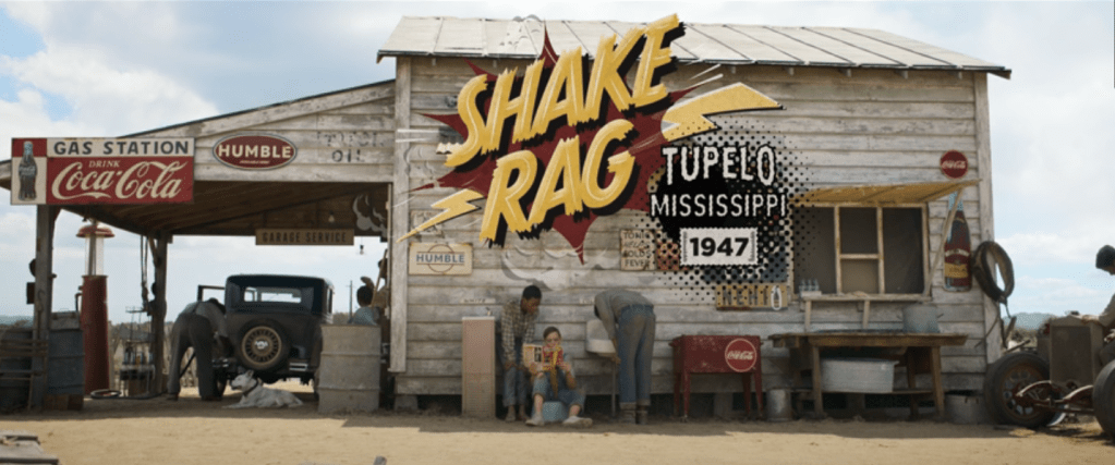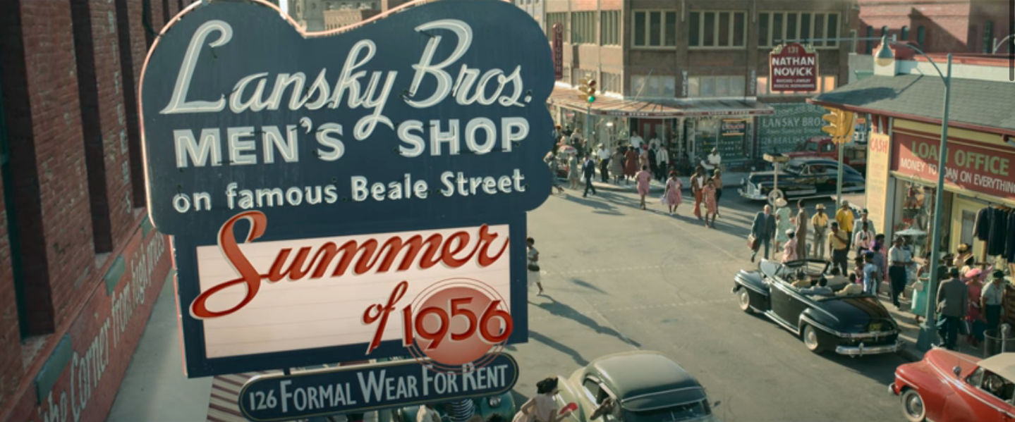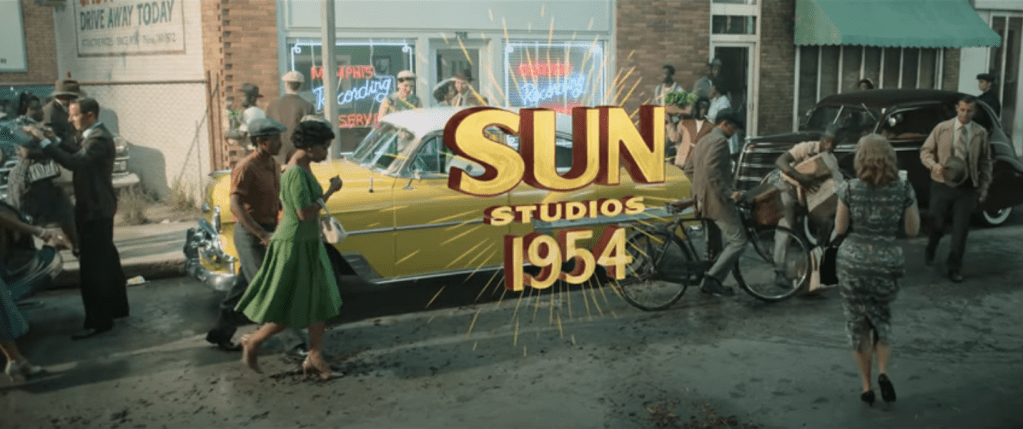 Elvis is nothing if not a visual spectacle. The production design, the sets, the effects and the costume design all sparkle brightly. Lurhmann’s visual techniques include comic book graphics and placing location names in large letters on screen and the recreations of Graceland and Highway 51, the International Hotel, Beale Street and other locations are breathtaking to behold.