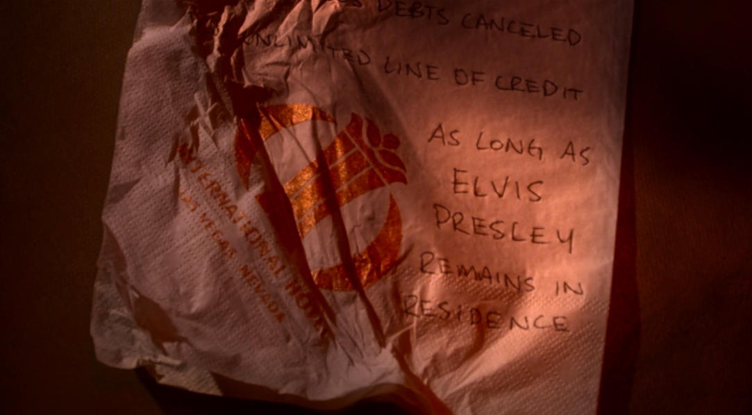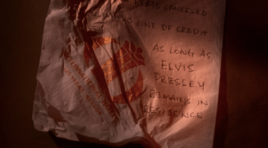 Speaking of Presley’s music, I was stunned on first viewing when – only THIRTY SECONDS into the movie – I hear “Edge of Reality”, a deeper cut from a great film. This song and its theme of reality obscured ties in with the carnival theme, the hall of mirrors and Parker’s chicanery. Then, only 9 seconds later, we hear “Cotton Candy Land” – sung by Stevie Nicks, no less. This trite ditty from It Happened at the World’s Fair takes on a sinister tone the way it is presented. And you’ll notice the lyric is tweaked; instead of “sandman’s coming”, it’s “snowman’s coming”, a nod to the Colonel’s Snowmen’s League of hucksters. So, not 40 seconds into the movie and I had to give points for the unearthing of these two songs and their canny usage.