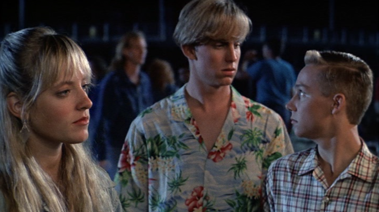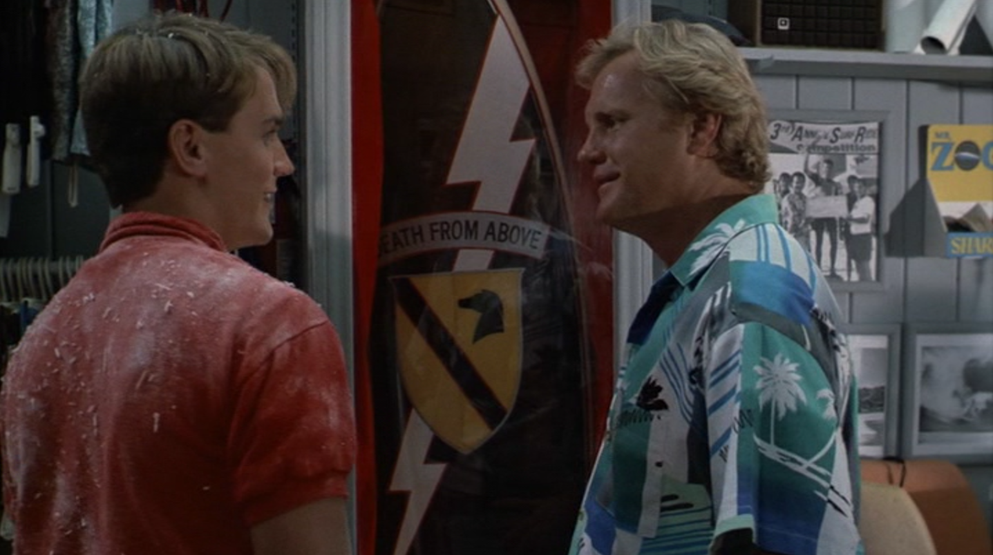 Starring Keith Coogan, Danielle von Zerneck, Richard Joseph Paul, Steve Monarque, Roxana Zal, Hunter von Leer, Brian Wimmer, Stuart Fratkin, Brett Marx, Christopher Rydell, Wally Ward, Greta Blackburn, Tracey Walter, Corky Carroll, Sonny Bono, Dick Miller, Brian Avery and the Surf Punks. Directed by Fritz Kiersch. From New World Pictures.