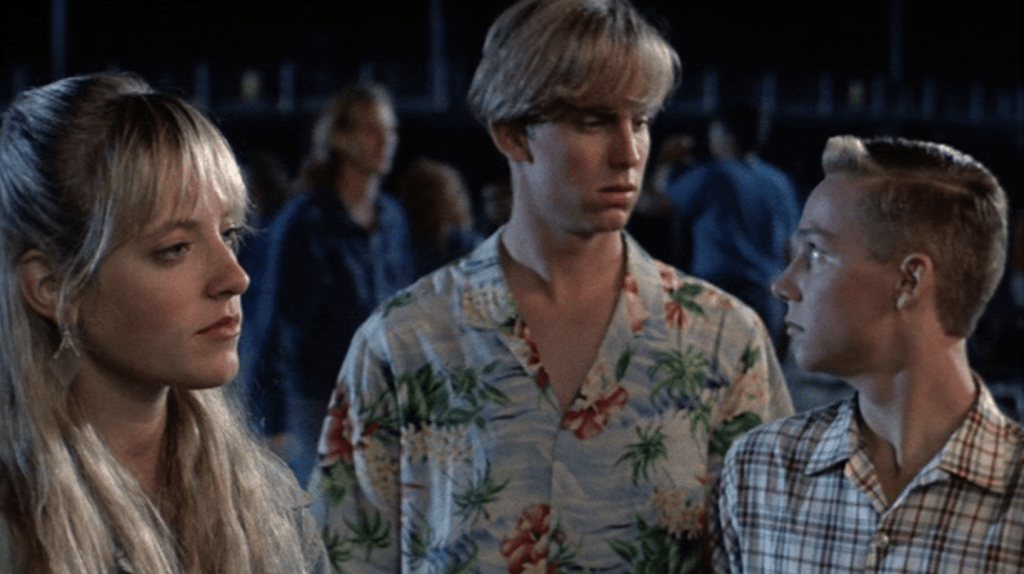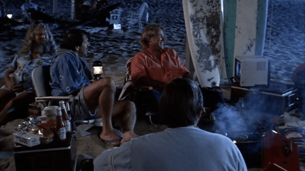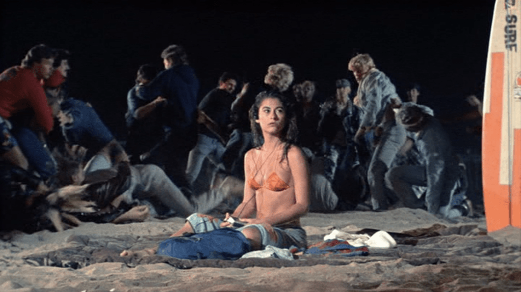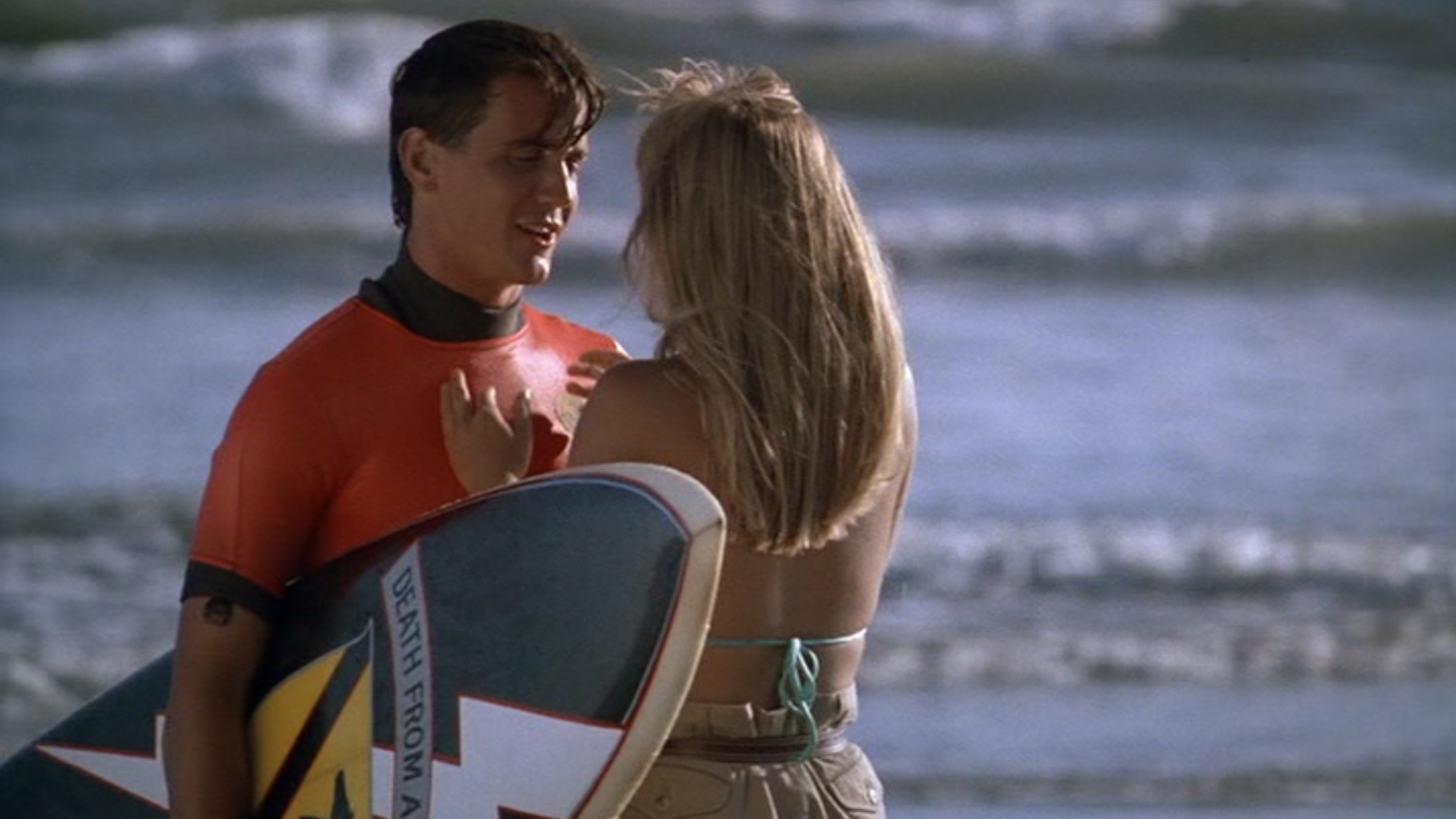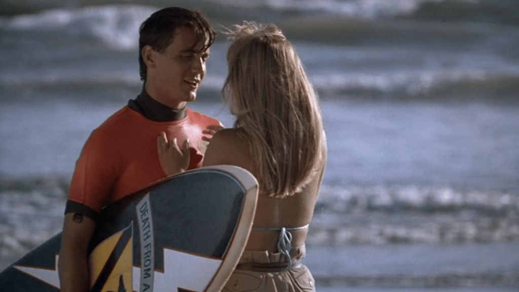 And the coming-of-age angle is handled well, too. The night before the compo, Nick and his friends invite some girls to their “penthouse”. Rainwood, though, is brooding alone. Cage asks if he is really going to leave this lifestyle and enroll in school back east. Cage is given lines of some significance that were much appreciated by those still awake on the floor of Apartment Zero; “Man, I don’t understand you at all. You like the beach, right? You live to surf. You don’t got beach and surf in college, do you? You got books and teachers. Is that the trade off you wanna make? I don’t think so”. And Allie challenges Nick, as well but from a different perspective – “Surf all your life”, she says, “just don’t be a ‘surfer’ all your life”. Boom. This carries weight. It even borrows slightly from the gravitas of the John Milius script for the aforementioned classic Big Wednesday. That film – and to perhaps a lesser extent, Under the Boardwalk – feature characters facing the moment in which they must decide if what they have to this point dedicated their life doing has inherent value. Is it something they can continue to do? Or is it something they must leave behind? Or can there be a compromise?