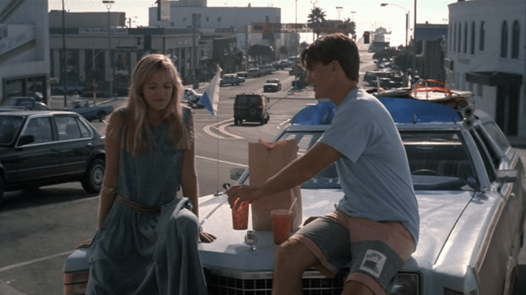 And that is the appeal of this film. The characters spring to life and the script is legitimately comical. But it is not without a poignancy as it does deal with the pivot point of life. For laughs, you can’t beat the many funny lines, lines that my friends and I adopted and many that I still use today; “Times are fully changin’, brah”, “Hey! That’s a Country Squire wagon, dude. A classic”, “My friends are coming over here soon and they don’t take to knobs the way I do”, when the guys get a closer look at some girls on the street they are declared “good from far but far from good”, and with girls the guys are not serious about it is “one boff and they’re off”, “If you can manage to drop your Loc wench, meet us in the garage, dude”, “Y’know what I think, brah? I think you got about an o-z of poo on the brain, dude”, “Later days, man”, “A lot of water. And that’s just what’s on top” and we had memorized Marone’s description of his dream about surfing in bowling alleys – “And, dude, you were bald in my dream, man! You were the Kojak surfer in my dream, buddy”. That’s good comedy.