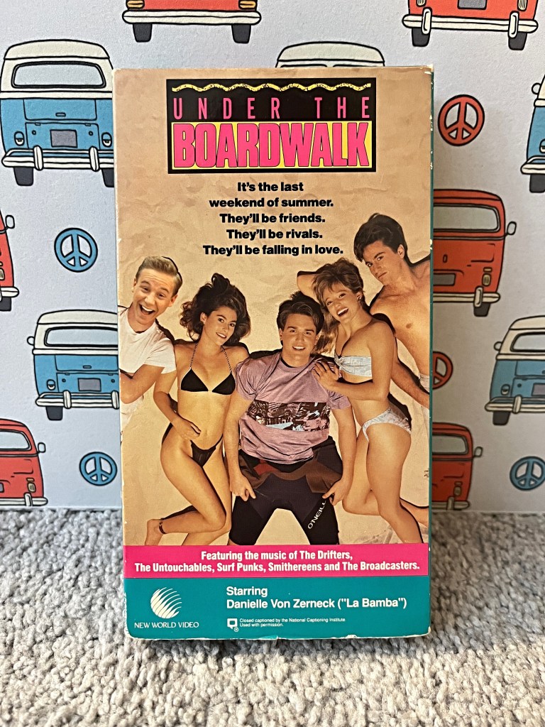I wish I could pinpoint the moment I discovered Under the Boardwalk though I feel like I stumbled on it on TV when I was a teenager. I also think I recall taping it off television but I know for sure that I was 20 or 21 when I found it on VHS. At that time, I was living on my own in Apartment Zero and working two part time jobs; one was at McDonalds, a time I chronicled here, and the other was at Eaton’s, a venerable Canadian department store. I was on a break from my job selling lamps and rugs at Eaton’s and cruising through the movies when I found this tape. Might not have been a real find then but I’m happy to still own this today as it would likely be hard to find on VHS now.