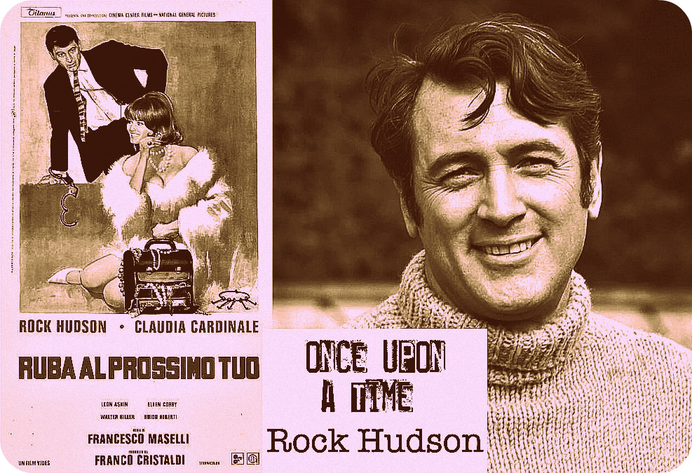 Ruba al prossimo tuo – also lasciviously titled A Fine Pair – is a crime/comedy film that stars Rock Hudson – 42 by this point – as no-nonsense New York cop Capt. Mike Harmon. Claudia (29 here) plays vivacious Esmeralda Marini, who travels to the Big Apple to see Mike who had been a friend and co-worker of her father’s; in fact, Mike had frolicked with Esmeralda when she was but a child. Miss Marini spins a yarn for Mike – a story of having married a thief who has stolen 2 kilos of jewels from the Austrian home of the wealthy Fairchild family. The Fairchilds are soon to leave New York to return to their home in Salzburg and Esmeralda wants Harmon’s help to replace the jewels before the family knows they’re gone. Eventually, Esmeralda admits that there is no husband, that she stole the diamonds and desperately needs Mike’s help to right her wrong. Straight-laced Harmon is not interested until he hears the name of Esmeralda’s accomplice – Mitchell is a world renowned thief and Harmon wants a chance to nab him. So, Harmon and Esmeralda travel together to Austria to case the Fairchilds’ castle and to see if the job can be done. Eventually, they fall for each other. Their affair flames brightly until they fall out over Esmeralda’s duplicity.