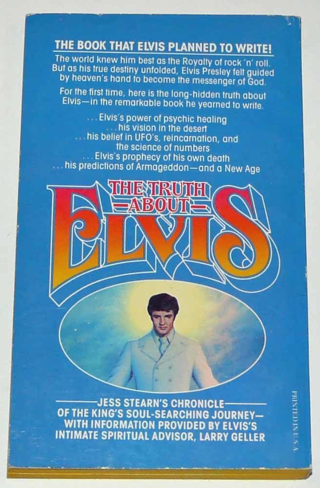 Geller briefly mentions in If I Can Dream that he and Stearn wrote “a book that presented an overview of Elvis’ spiritual quest” and buried in the notes section of Careless Love, the second of Peter Guralnick’s two-part seminal Presley bio, is a mention that background information for the “Spiritual Awakenings” chapter comes from a handful of sources including The Truth About Elvis by Jess Stearn. But that’s about all I could find.