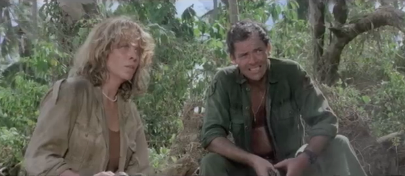 We are exploring a new sub genre today on Once Upon a Time – it’s our first look at a “macaroni combat” film. Euro War or Spaghetti Combat films are just what you would think by the name – war films made in Italy and other European countries. You’ve heard of spaghetti westerns? Well…macaroni combat. These films really gained traction in the 1970s and by the Eighties, they were mostly copies of Apocalypse Now and The Deer Hunter. The Last Hunter steals from both – it was filmed in the exact locations in the Philippines as was the Coppola film and – stay with me – The Deer Hunter was released in Italy as “Il Cacciatore” and so, to capitalize, Margheriti’s film was christened similarly, some posters even bearing the title “Cacciatore 2“, if you can believe it.