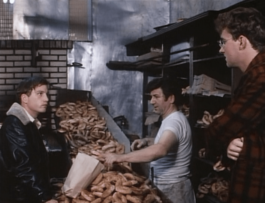 The street scenes and locations lend this film much of its charm and watchability. Dig that Wilensky’s Light Lunch is a real place, opened in 1932 by Moe Wilensky. It is a “kosher-style” – meaning not necessarily kosher – light lunch counter that is still famous today for its special grilled sandwiches served with “compulsory” mustard and washed down with their soda pop drinks that are still mixed by hand. The deli has been featured on many food programs and is still run by Moe Wilensky’s widow and their descendants. Check them out here. And then there is Fairmount Bagel. According to their story, Isadore Shlafman opened the first bagel bakery in Montreal. The bagels were rolled by hand and baked in a wood-fired oven. Today the same methods are employed by Grandfather Isadore’s grandchildren.