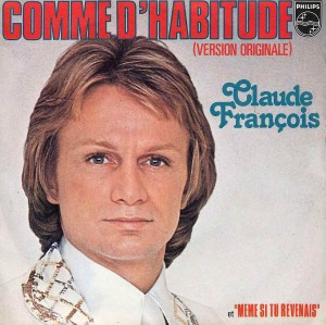 Twelve years previously, Claude François had teamed with French songwriters Gilles Thibaut and Jacques Revaux to pen “Comme d’habitude” (French for “As Usual”), a song about a stagnant relationship; the love affair has gone cold and the two have fallen into routine (“All alone I will go to bed / In this big cold bed / as usual / I will hide my tears / as usual”).