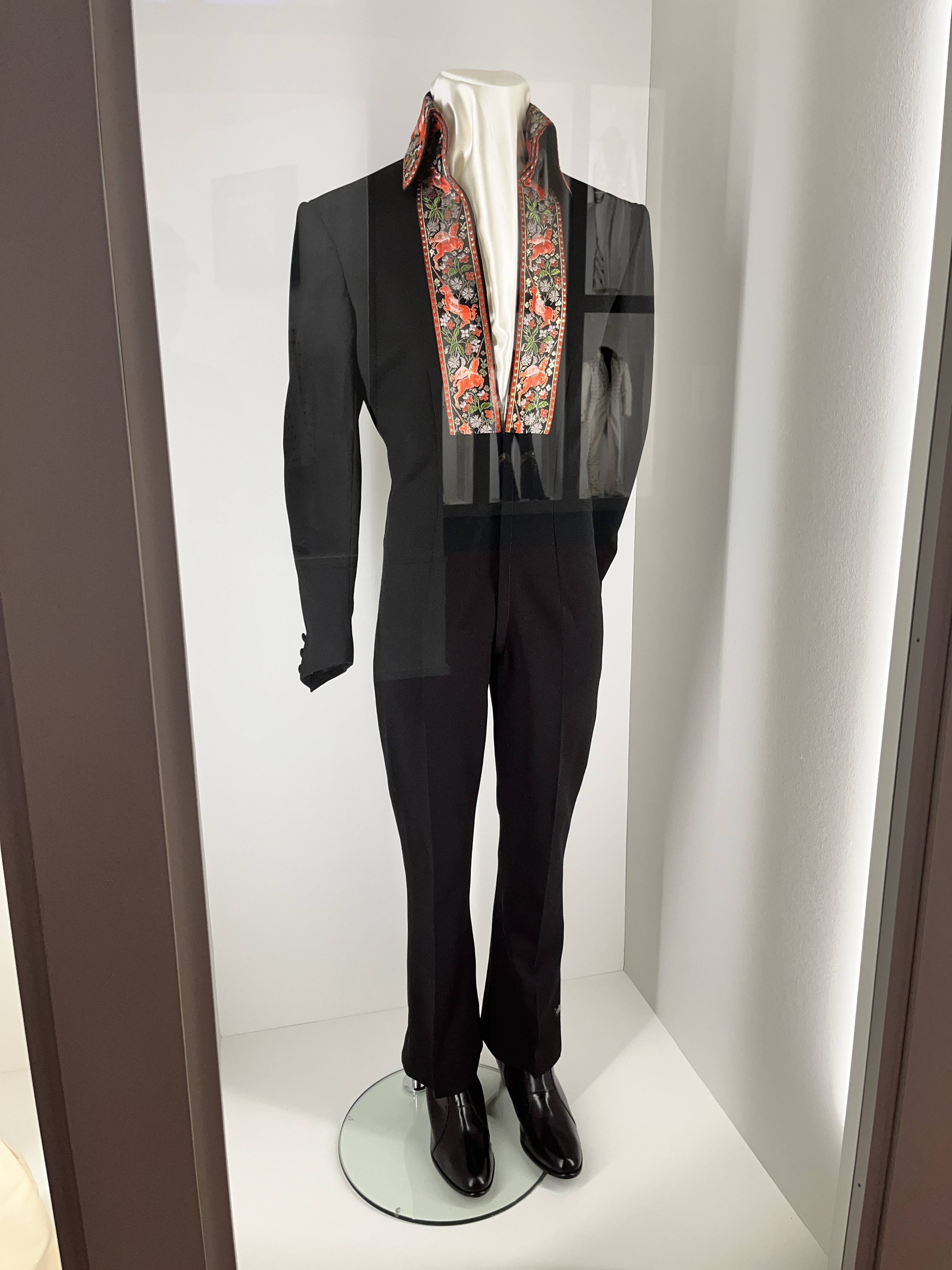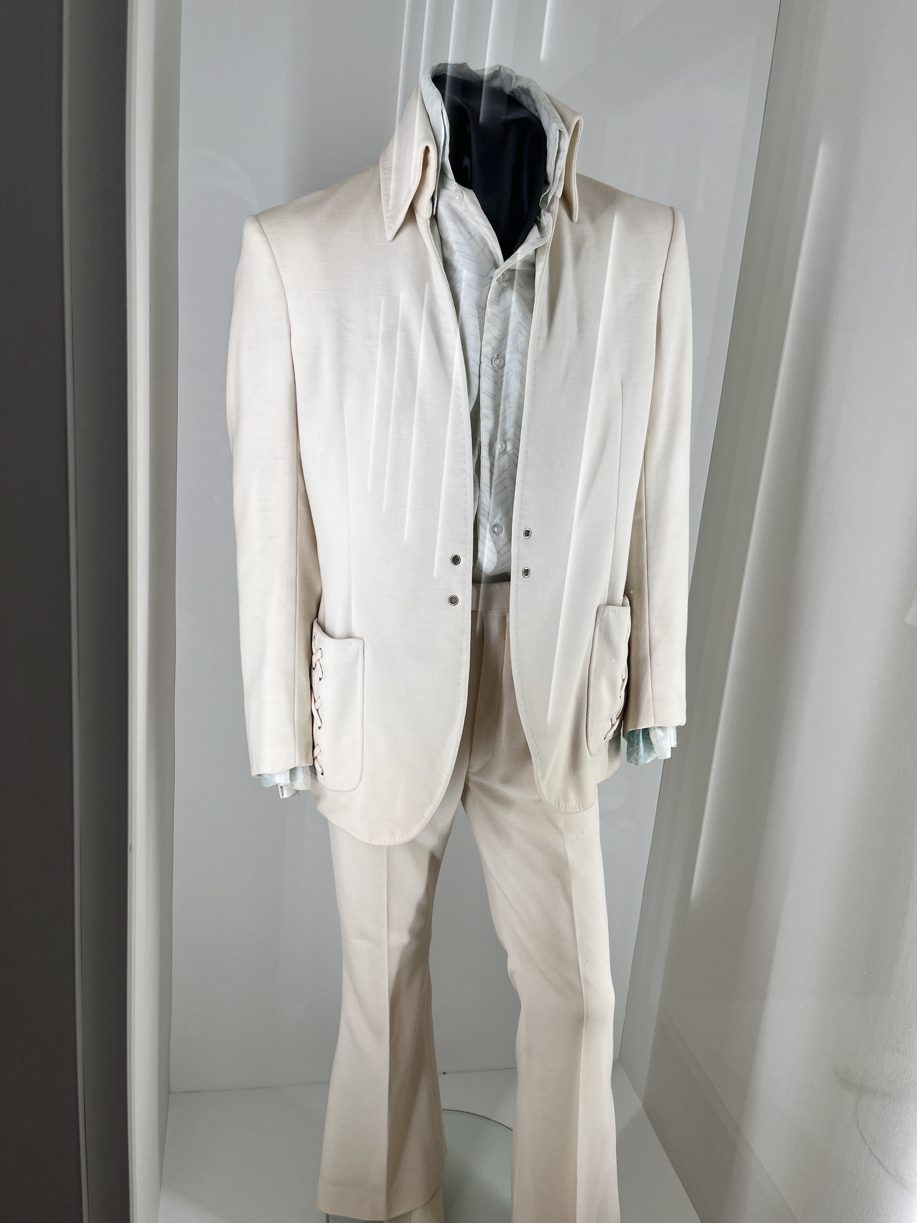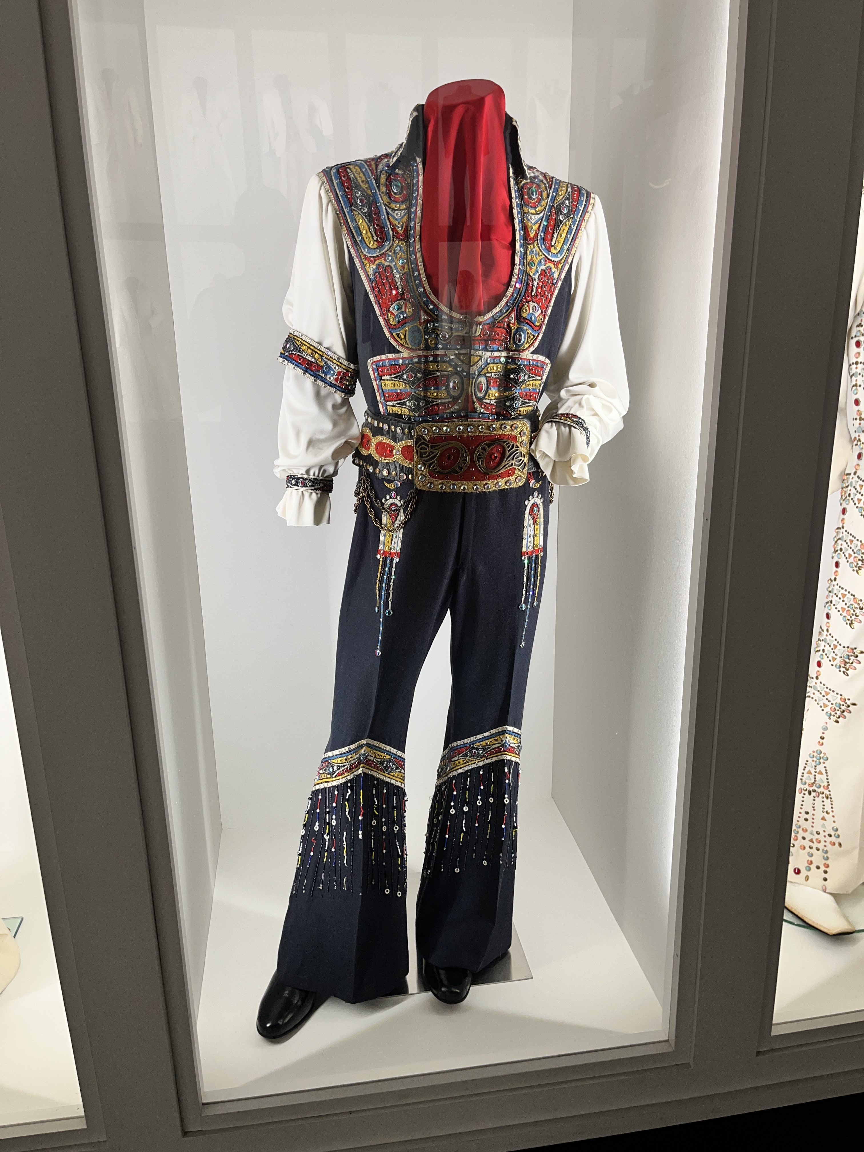 As regards the house, well, what can I say? There is nothing quite like being there and one enters into a clearer realm of understanding Elvis Presley when one spends time in Memphis and visits Graceland. Simply breathing the air in the house, feeling the thatched wallpaper, standing in the billiard room, pondering the kitchen and jungle room and considering the staircases and how they were used – all these moments bring Elvis somehow to life. You find yourself imagining the action that took place in these rooms and you recall how much Elvis loved being in his home. It makes being there, where he walked, a significant thing. When it comes to the exhibits, they are many, varied and excellent. There are exhibits devoted to the jumpsuits, the “’68 Comeback Special”, individual films, King’s time in the Army and the making of Baz Luhrmann’s Elvis movie. There are the two airplanes, the Lisa Marie and the Hound Dog II to tour and a vast collection of Presley’s automobiles to view. Sadly, there is a now a section devoted to Lisa Marie. Sad to see her clothes on display like her dad’s have been for years. In Lisa’s exhibit, even my man Jerry Schilling has a suit on display; the one he wore when he escorted Lisa to the Golden Globes two days before her death.