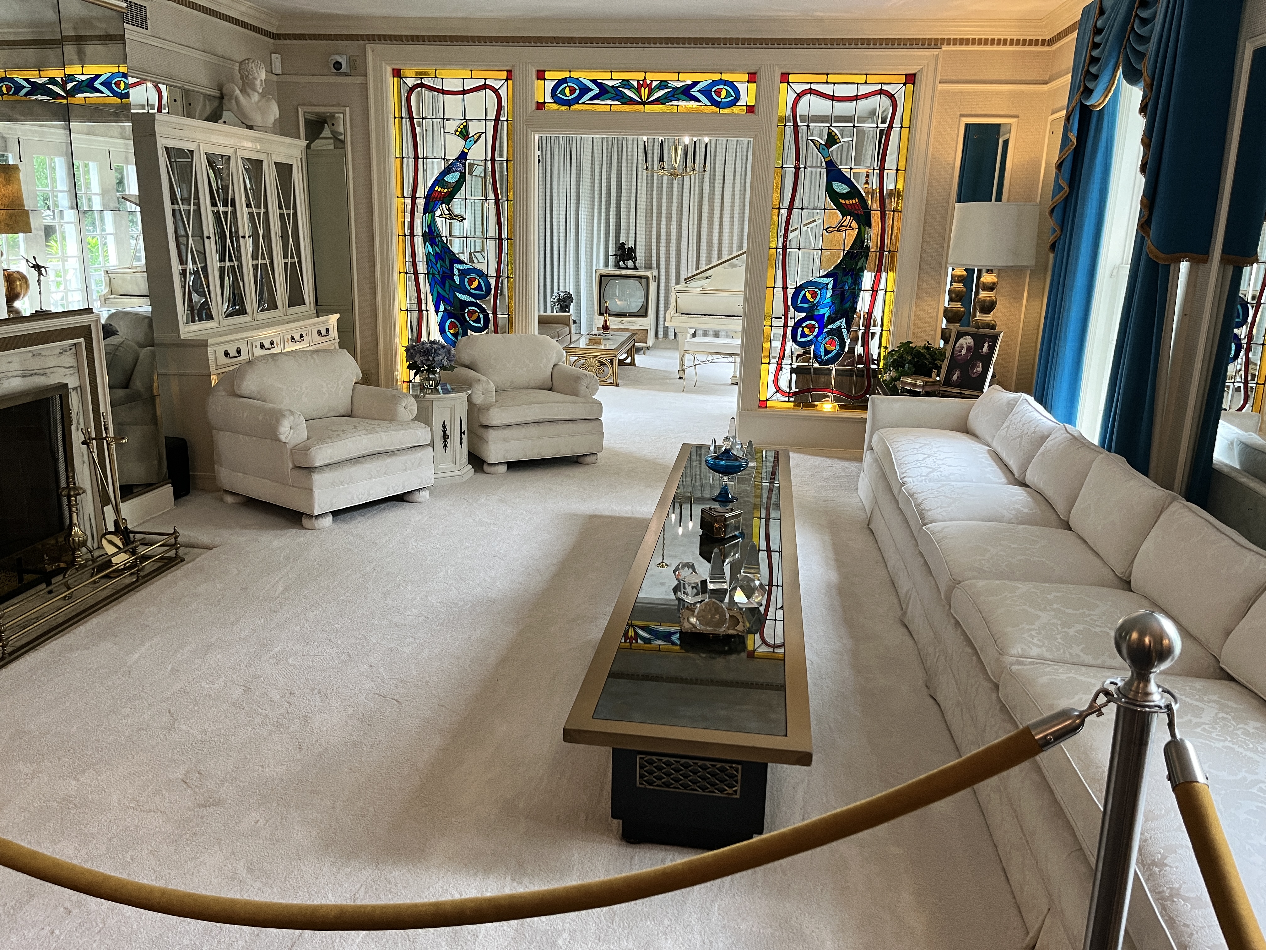There is a lot to see in Elvis Presley’s Memphis. This actually makes things a little difficult. In past years, I have gone back up to the house five and six times. You hop on a shuttle, call the driver by name and she says “you gon’ up again?!”. During the fourth and fifth trips, you are often in there alone. I have had the den or the “jungle room” to myself for ten, fifteen minutes and stood on the back lawn all alone, pondering. But with there now being so many exhibits to see across the street, with lunch and shopping, it takes a lot of time to do. On this trip, I only got up to the house twice. Now, mind you, the second time I was basically alone with my thoughts in the lounge area of the racquetball building, for example, with the ability to do what you are not really supposed to do – shoot video. The signs say it is forbidden to take videos for the purpose of uploading to any site that is monetized. As mine technically is, I hesitate to share the videos here (check my socials).