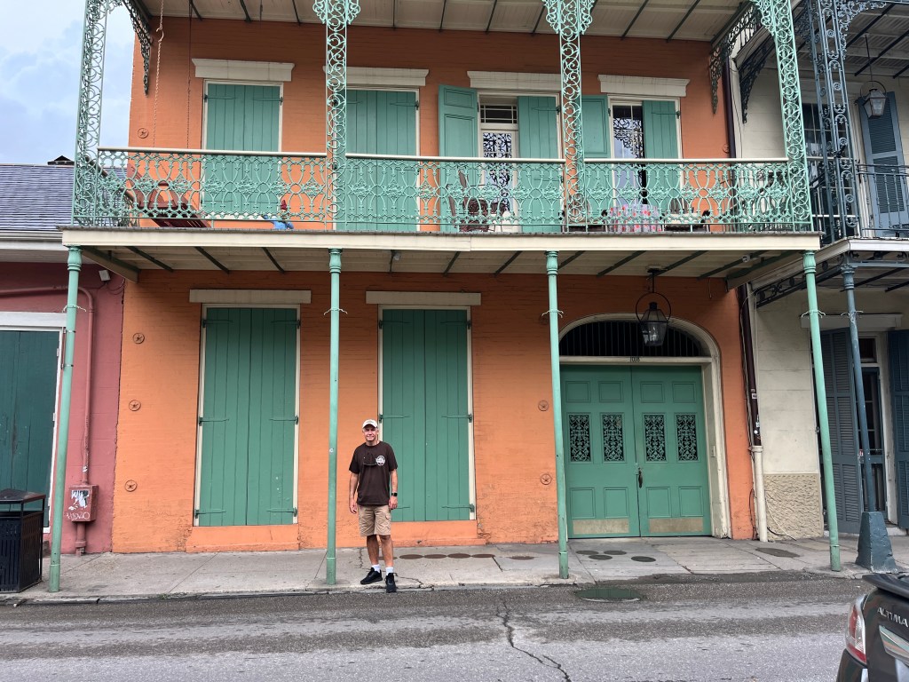 There was one quick little Elvis Moment in N’Awlins courtesy something my Danish friends had discovered. Presley’s finest film is 1958’s King Creole, a film that takes place and was partially shot in New Orleans. Presley as Danny Fisher says his family lives at 29 Royal; there is no 29 on Royal Street but here’s what there is. At the beginning of that film, King does a great job on the fun little tune “Crawfish”. I’ve always loved this number for many reasons, not the least of which is that, while singing, we see the man comb that great hair of his. Danny sings along with a street vendor (played and voiced by Kitty White) while sitting on his family’s balcony. I had always wondered if this was on a set but it was shot on location at 1018 Royal Street. This building still stands – though it seems vacant – and the same railing is intact. An Elvis Photo Op, for sure.