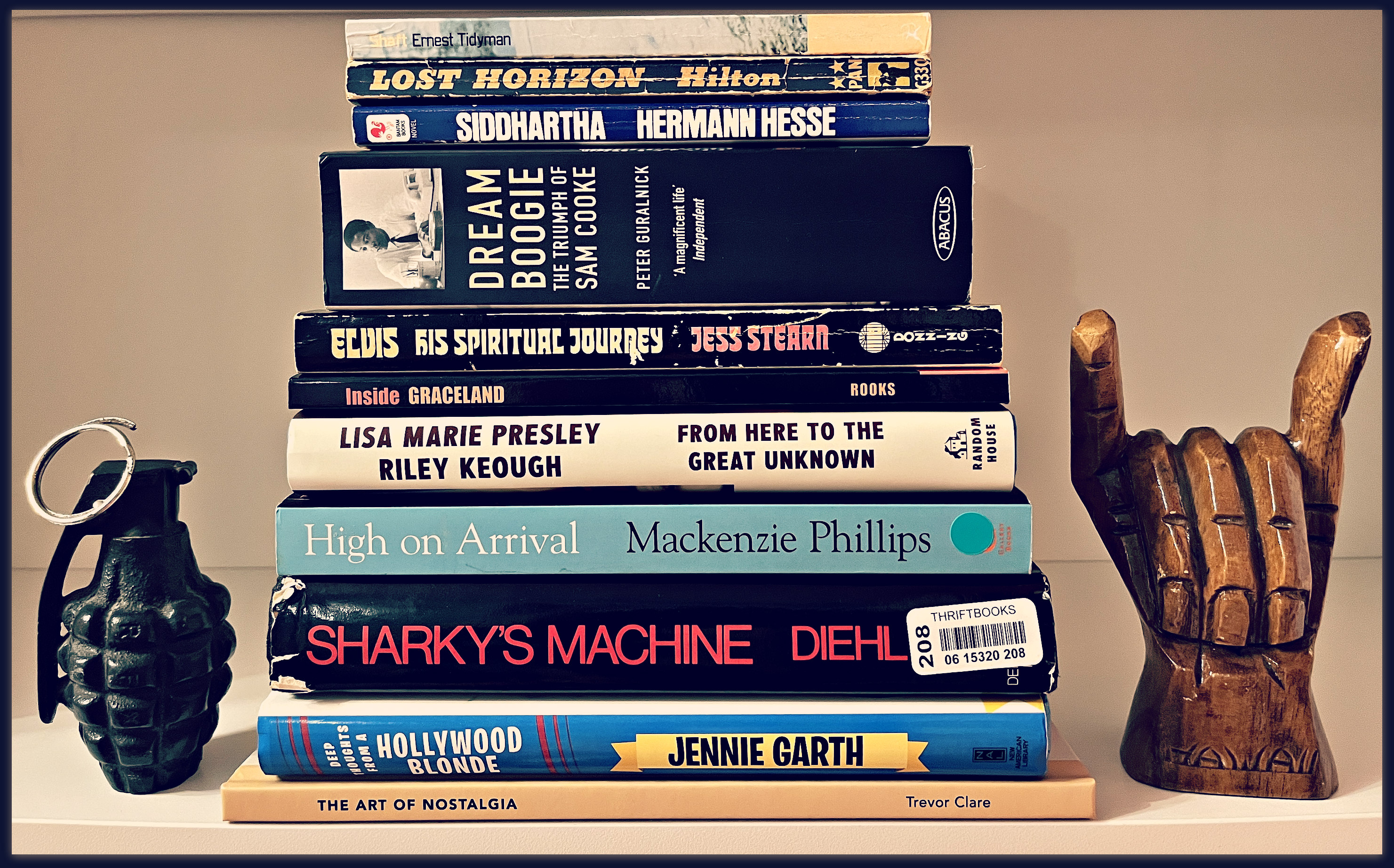 Speaking of Elvis – as usual – I read three King books this year, reporting on two of them. I ended the year reading Lisa’s memoir and I’ll be issuing thoughts on it in the future. Our son now lives in the town I grew up in and he bought us a book called The Art of Nostalgia, filled with images painted by an artist from that town of landmarks in the area. A thoughtful gift and it brought back many memories to me. I took a couple of flyers and read a few lightweight novels from the Fifties and then in September I read a sensational memoir. To accompany my annual Labour Day Weekend viewing of American Graffiti, I pulled down the book by Mackenzie Phillips, High on Arrival. While it was salacious and filled with garish stories of Hollywood excess, it managed to stay grounded in a certain humanity. Phillips told her harrowing tale with some grace and it was a fascinating read I devoured in but days. I finished up the year with another memoir, Deep Thoughts from a Hollywood Blonde, this one much tamer and sharing the story of one of my favourite golden-haired ladies, Jennie Garth and lastly was a hardcover first edition of Sharky’s Machine, the book by William Diehl that was turned into the Burt Reynolds film that I love much more than the book.