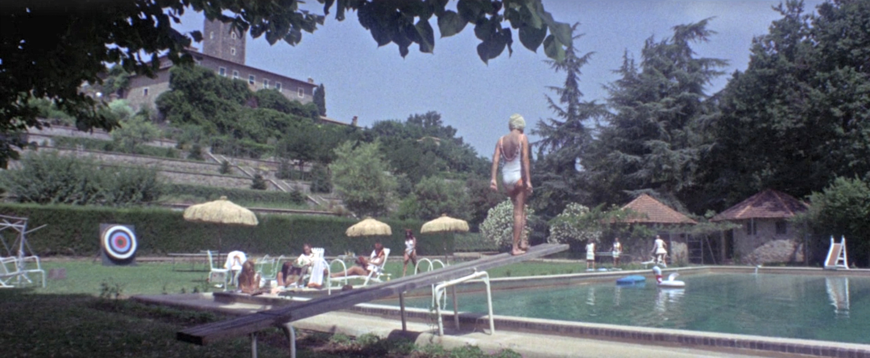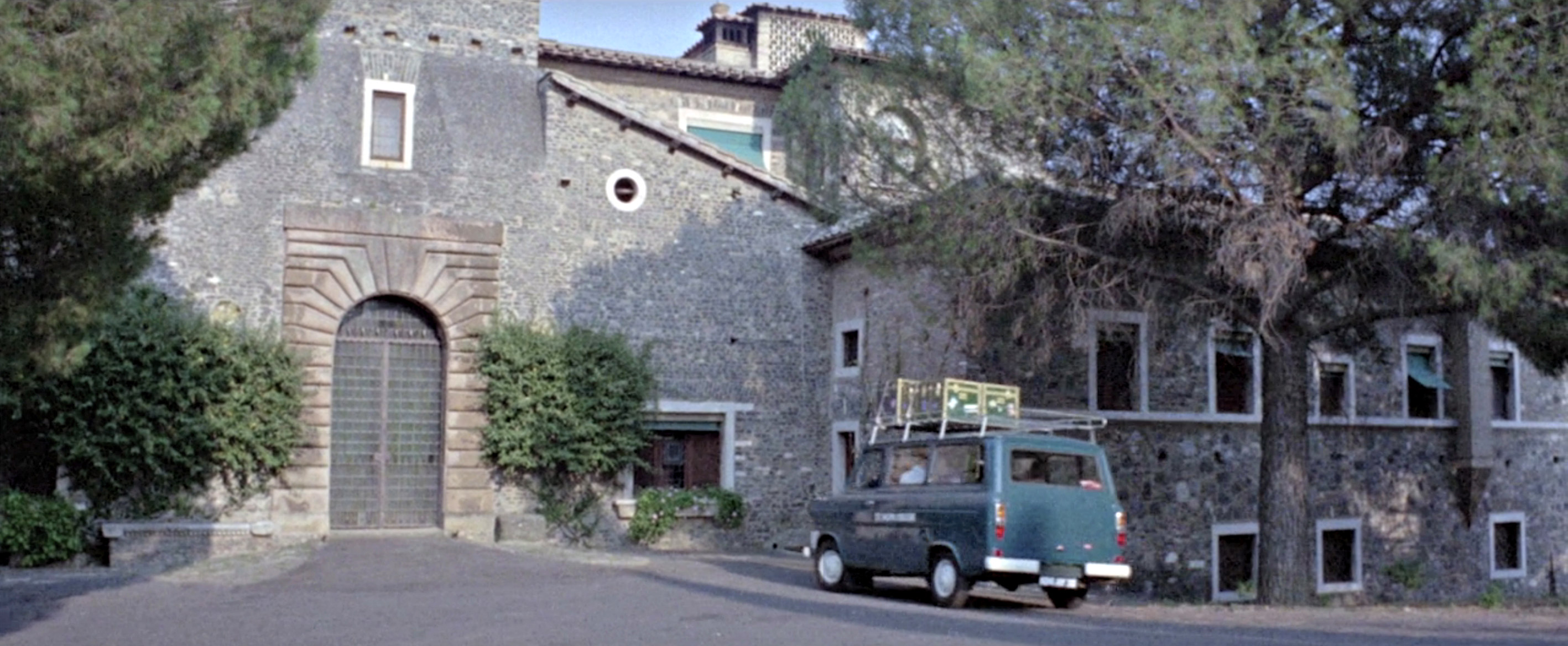 Perhaps the real star of Nude…si muore, though, is the location. St. Hilda’s College is “portrayed” by Castello della Castelluccia, a castle constructed on the remains of a Roman villa that dates back to the 1100’s. It is tucked in the lush countryside outside of Rome and exists today mostly as a venue for weddings. Like, fairytale weddings. I wonder at the type of people who tie the knot there and what it costs them. There are 23 rooms, each unique and with their own moniker. “The lush grounds exude an undeniable romantic ambience”, sure, but I wish I could’ve found more info on the castle’s history before it became a high-tone wedding venue for the filthy rich. And, as you would imagine, info about the castle’s use in our film is nowhere at all to be seen.