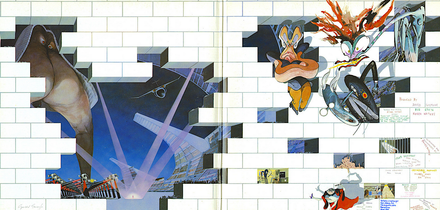 Here’s what I learned. The Wall tells the story of Pink, a fictional rock star whom Waters based on himself and Syd Barrett. As the record opens, Pink is giving a performance and is about to share his life story with the audience. In a flashback then, we see that the anguish of Pink losing his father in World War 2 begins his building of a metaphorical wall around himself. Additional bricks come through his experiences with tyrannical and abusive teachers and an overprotective mother. As an adult, though married and a popular musician, the emptiness of casual sex, his wife’s infidelities and his violent outbursts resulting in trashed hotel rooms all add to his traumas. Finally, depressed and feeling trapped, he shuts down, completes his wall and cuts himself off from the world.