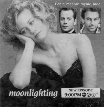 My origins with the show may be cloudy but the creation of the show itself is well documented. Glenn Gordon Caron (b. NYC, 1954) was a producer on Remington Steele before starting his own company, Picturemaker Productions. Caron created Moonlighting and later he made four feature films, the final one being a remake of the classic tale Love Affair (1994) that starred Warren Beatty, Annette Bening, Pierce Brosnan (speaking of Remington Steele) and Kate Hepburn in her final film performance.