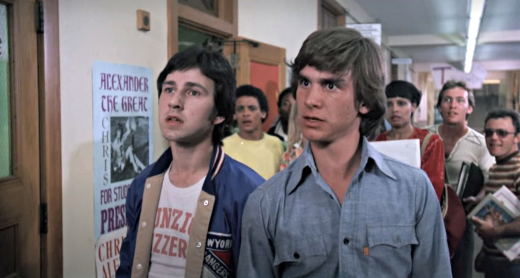 I find Bruno Kirby’s appearance here interesting. He does well but I just wouldn’t pick him to be cast in the lead role in a teen film like this one. First of all, he’s almost 30 here and some 4 years previous he had raised his profile in Hollywood with his solid portrayal of young Clemenza in the substantial crime epic The Godfather Part II. I always liked Bruno Kirby though for Good Morning, Vietnam but most significantly When Harry Met Sally… He always kills me during the charades scene; “draw something resembling anything!” Pretty Lee Purcell was actually in her thirties playing a high schooler here. For me she will always be PG, Peggy Gordon, the perfect wife for the legend Matt Johnson in Big Wednesday; read about her here.