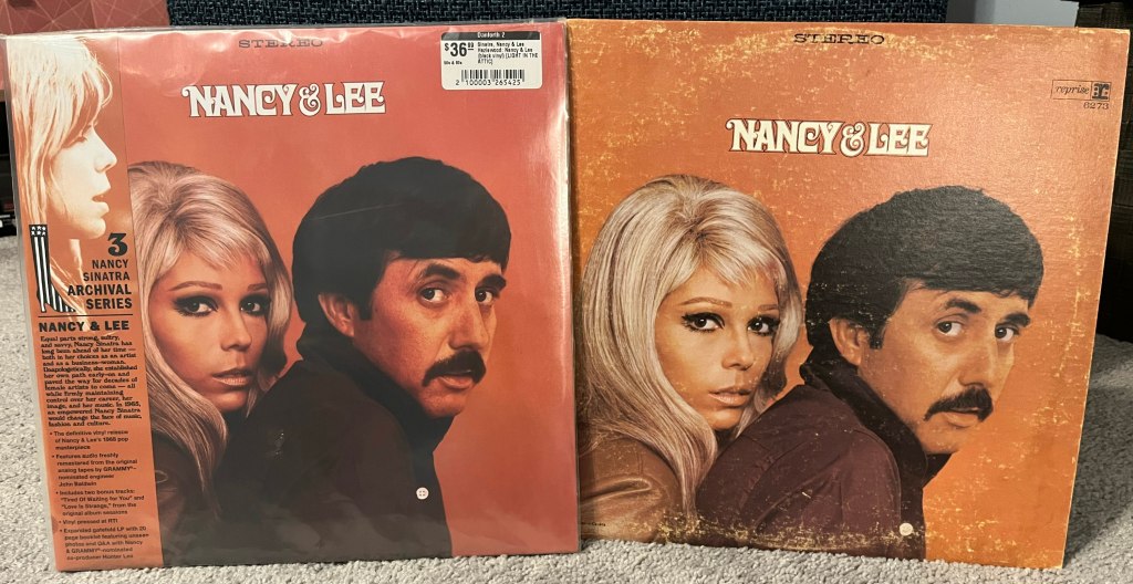 It was inevitable that Sinatra and Hazlewood would record an album of duets and Nancy & Lee hit the racks in March of 1968. The album starts out with an understated and effective version of “You’ve Lost That Lovin’ Feelin'” and then segues into a song I’ve written about here at Vintage Leisure. “Elusive Dreams” is a venerable country song that has been recorded by many and tells a sorry tale of a couple who is forced to travel around unable to gain a foothold because the guy can’t find work. To learn why the song frustrates me so, click here. Incidentally, Nancy has related that Elvis once played her recording of the song over and over for her, telling her how good it was. It was his approval that convinced her that a song she hadn’t cared for did indeed have a certain quality.