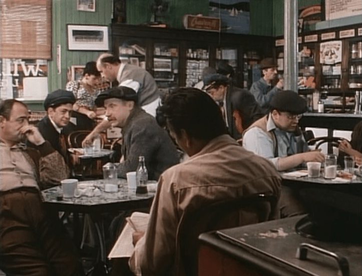 On the Waterfront (1954) // What is the opposite of a film shot in the Hollywood sunshine? One would have to concede that it is this one, made in Hoboken in dreary late November. And instead of lovers frolicking on the beach or in a clinch in a Chevy up on Mulholland under the stars, this one has Brando getting pummeled and bleeding all over the grimy waterfront docks. Surely one of the greatest films ever made, Kazan’s On the Waterfront is a striking film and for many reasons; at least three compelling performances and I would add the stark, depleted landscape of the location shoot. The desolate setting comprised of dark, damp streets, a rundown playground on a dreary day and “workers’ slum dwellings, bars, littered alleys, and rooftops” – a barrenness often mirrored by autumn – adds to the tenuous and desperate atmosphere of this remarkable film.