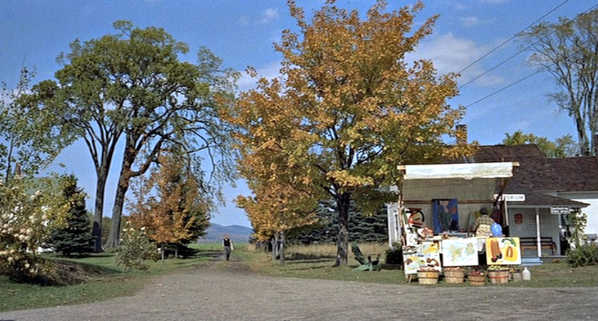 All That Heaven Allows (1955) // Director Douglas Sirk was a master of the melodrama and one of his most popular was this film that was the second of his to star Jane Wyman and Rock Hudson. In this romantic tale, Wyman plays a well-to-do widow who scandalizes her kids, her friends and her town by becoming involved with a younger poor man played by Rock. But another prominent star of the film is the scenery. The first moments of the movie contain wonderful autumn imagery – including Rock the gardener burning leaves in the street! – and the fall colours are positively aglow in the light of Technicolor. I know that we prefer a location shoot but these environs are not exactly a set either. Colonial Street is one of the exterior “sets” on the Universal backlot and has been used for countless productions including my beloved Leave It to Beaver. The settings and the colours fit so well with this tender story of life and love and it all adds up to a film experience that is the exact equivalent of a cozy autumn evening curled up with a hot beverage.
